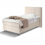 Via onze webshop kunt u onze vaste bedden volledig personaliseren. Kies de gewenste afmetingen en selecteer uit meer dan 50 verschillende stoffen, kunstleersoorten en kleuren om uw boxspring perfect af te stemmen op uw slaapkamer. Met het gemak van onze online winkel kunt u uw ideale boxspring eenvoudig samenstellen en bestellen.